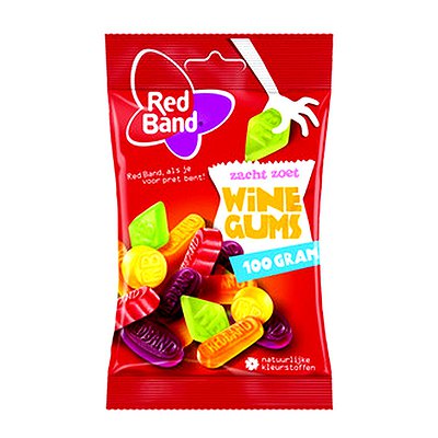 Redband Winegums heeft een mix van verfrissende winegumsmaken. Eén snoepzakje Redband Winegums bevat 100 gram zoetigheid en is per 24 snoepzakjes verpakt.